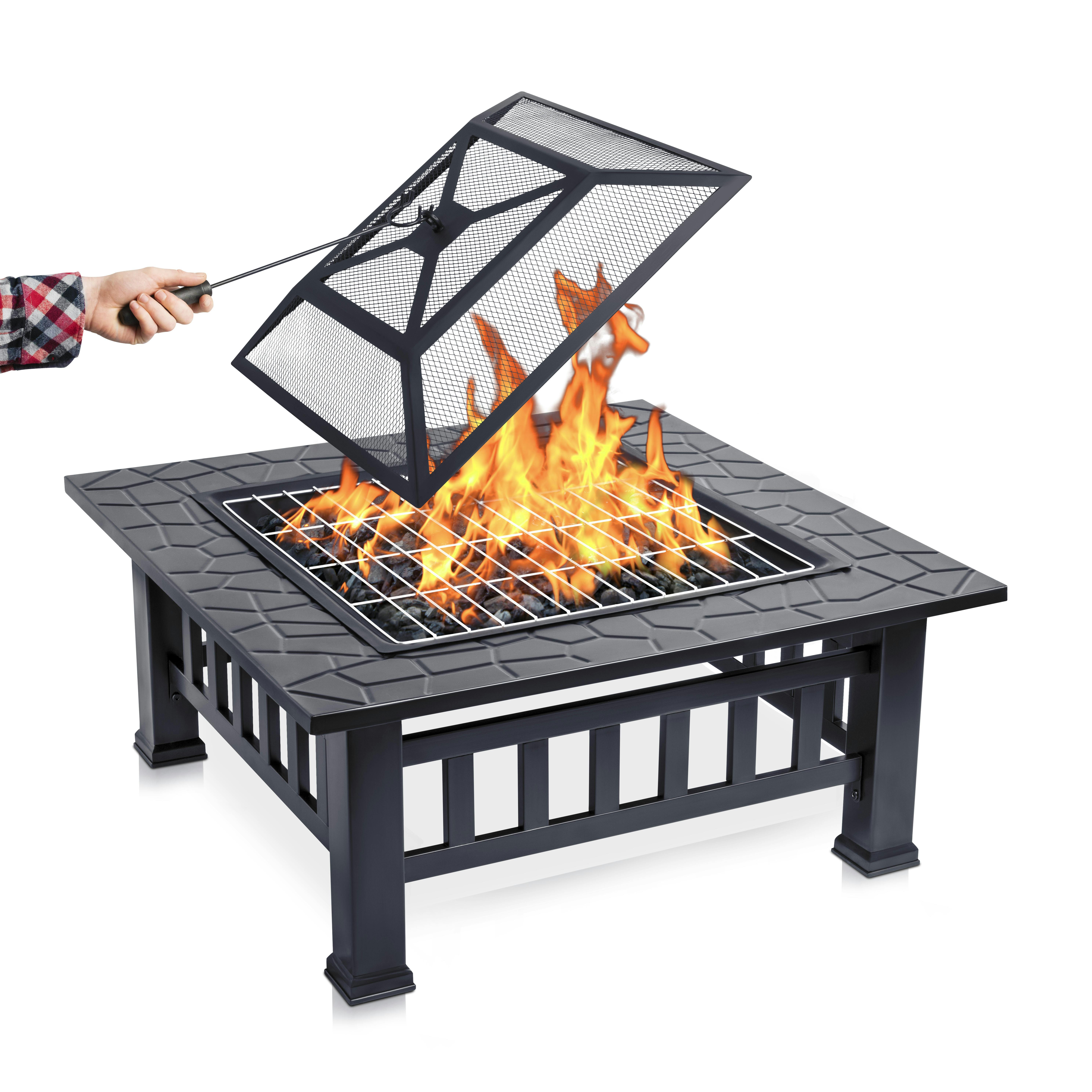 Masbekte Feuerschale Mit Grillrost Funkenschutz Fire Pit Fur Bbq Heizung Garten Terrasse Metall Feuerkorb 3 In 1 Feuerstelle Im Freien Quadratische Feuerstelle Online Kaufen Otto